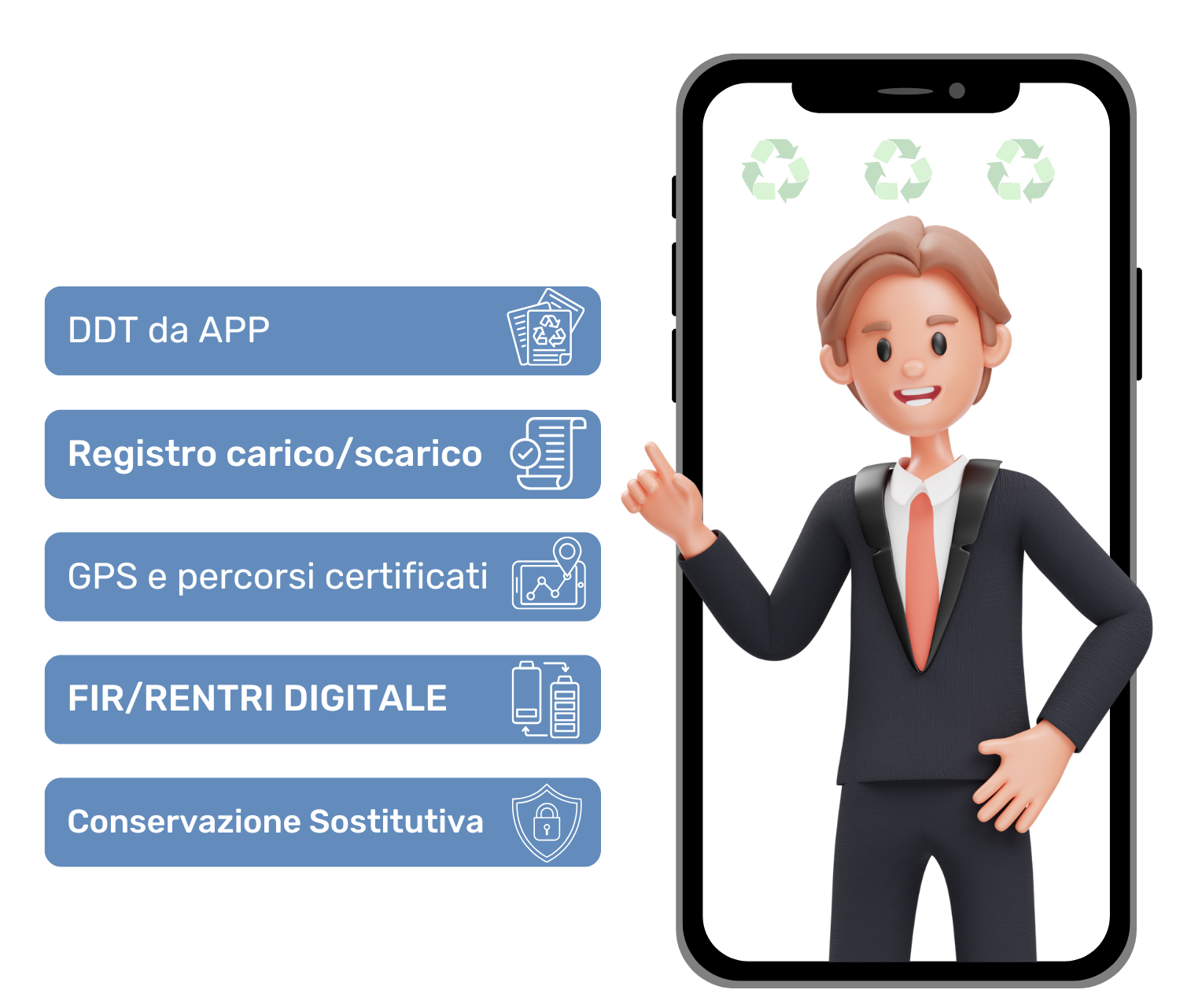 integra un sistema di conservazione sostitutiva digitale conforme alle normative vigenti, garantendo che tutti i documenti prodotti nell’ambito della gestione rifiuti (FIR, DDT, allegati tecnici e comunicazioni) siano archiviati in modalità legalmente valida nel tempo, senza necessità di supporto cartaceo